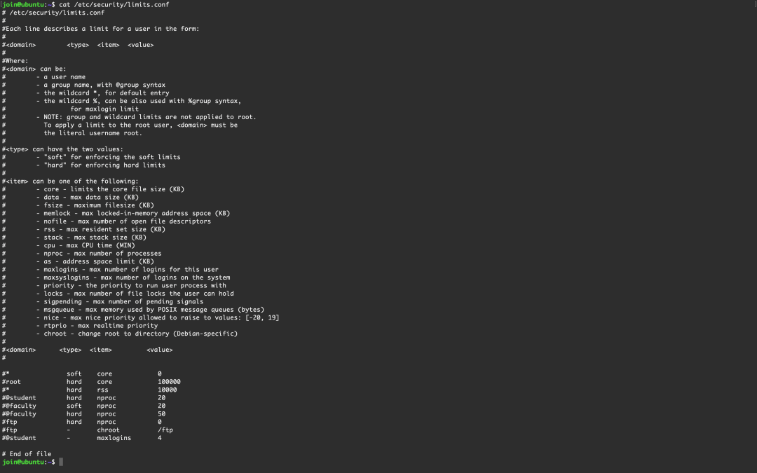 设置用户的资源限制,通常定义在 /etc/security/limits.conf