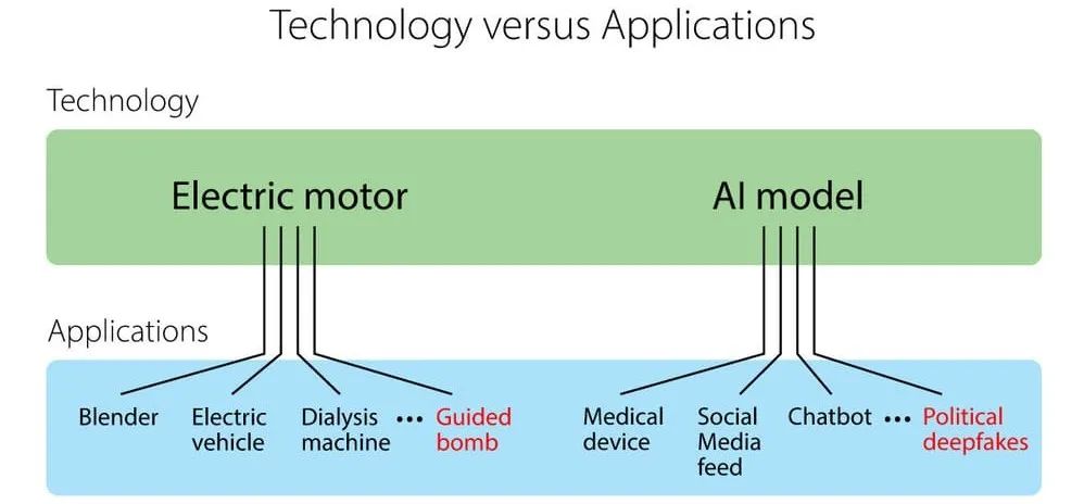 此前,吴恩达也多次就此事发声。他认为,监管机构应该监管应用而不是技术。例如,电动机就是一项技术。当我们将其放入搅拌机、电动汽车、透析机或制导炸弹中时,它就成为了一种应用。想象一下,如果法律规定,当任何人以有害的方式使用电机时,电机制造商都要承担责任。那电机制造商要么停产,要么将电机制造得非常小,以至于对大多数应用来说毫无用处。如果我们通过这样的法律,可能会阻止人们制造炸弹,但我们也会失去搅拌机、电动汽车和透析机。相反,如果我们关注特定的应用,就可以更合理地评估风险并判断如何确保它们的安全,甚至禁止某些类型的应用。