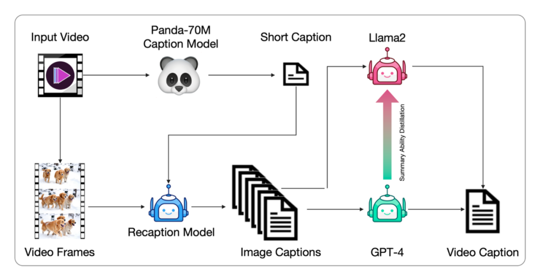 视频数据通常没有文本描述,需要转换为文本描述以供文本到视频模型训练。现有的视频字幕数据集字幕较短,无法全面描述视频内容。智谱 AI 提出了一种从图像字幕生成视频字幕的管道,并微调端到端的视频字幕模型以获得更密集的字幕。这种方法通过 Panda70M 模型生成简短字幕,使用 CogView3 模型生成密集图像字幕,然后使用 GPT-4 模型总结生成最终的短视频。智谱 AI 还微调了一个基于 CogVLM2-Video 和 Llama 3 的 CogVLM2-Caption 模型,使用密集字幕数据进行训练,以加速视频字幕生成过程。