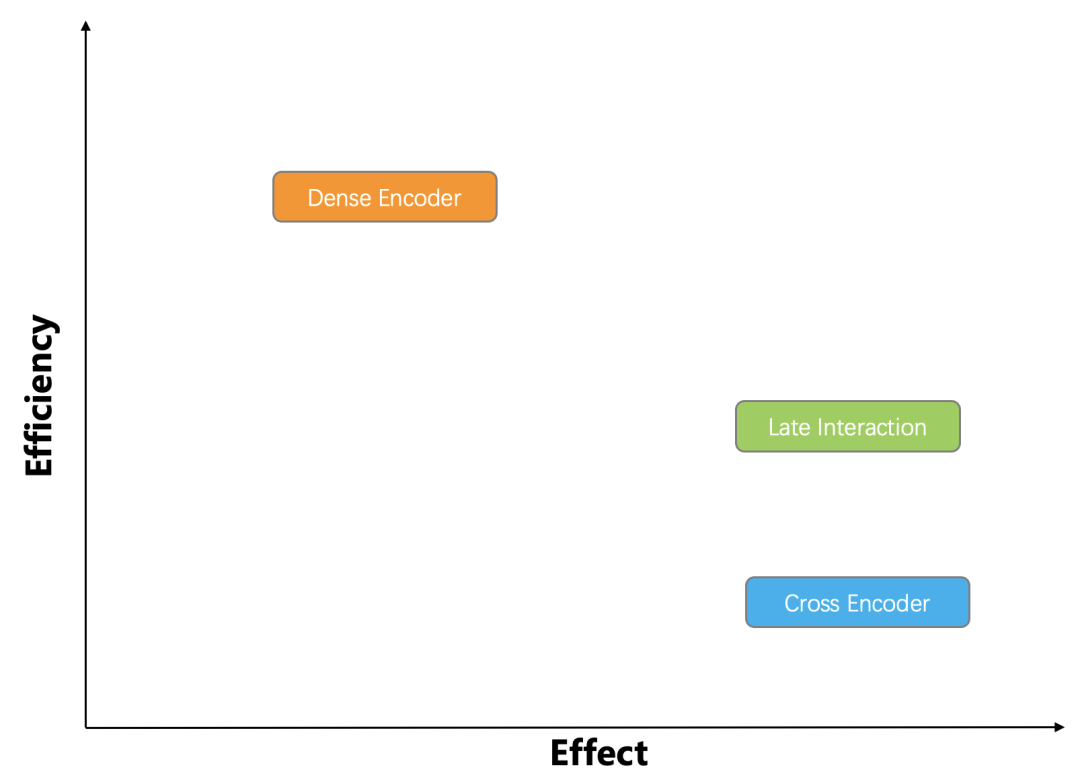 因此相比之下, Cross Encoder 可以称作早期交互模型 (Early Interaction Model),而以 ColBERT 为代表的工作可称为延迟交互模型(Late Interaction Model)。