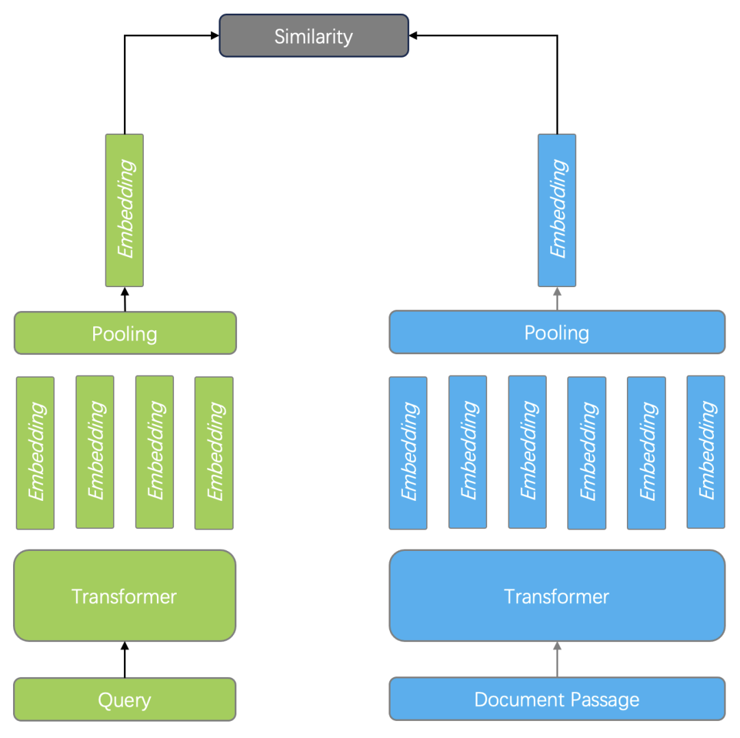 其二是相比于双编码器,ColBERT 输出的是多向量而非单向量,这是从 Transformer 的最后输出层直接获得的,而双编码器则通过一个 Pooling 层把多个向量转成一个向量输出,因此丢失了部分语义。