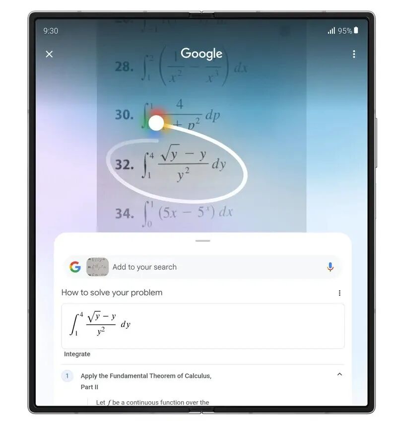今年早些时候,我们发布了 "圈定即搜" 功能 (Circle to Search),该功能让您无需切换应用即可在 Android 设备上轻松进行搜索。此后,我们增加了翻译功能和针对一系列物理和数学问题的作业帮助功能。很快,"圈定即搜" 功能将能帮助您学习符号数学等更复杂的课题,还能扫描屏幕上的条形码和二维码。