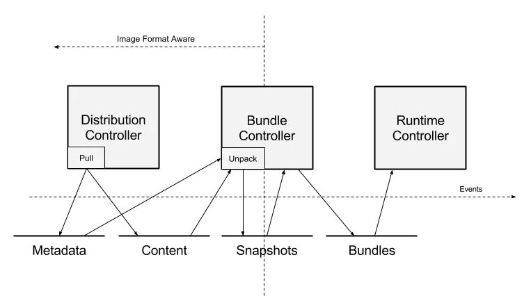 2.一旦镜像拉取完成,用户可以指示Bundle Controller将镜像分解包到一个bundle中。从内容存储中消费后,图像中的层被解压缩到快照组件中。