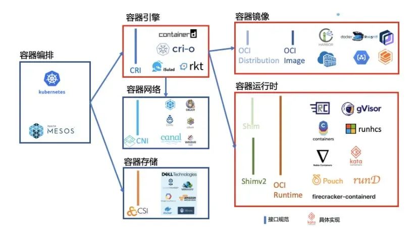 2016 年 - 2017 年,容器生态开始模块化、规范化。CNCF 接受 Containerd、rkt项目,OCI 发布 1.0,CRI/CNI 得到广泛支持。