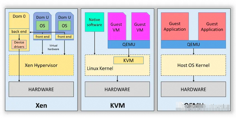 依据以上条件,可以将虚拟化分为两种类型,就是当前流行的裸机型和主机型。