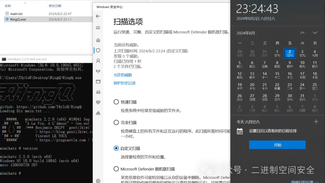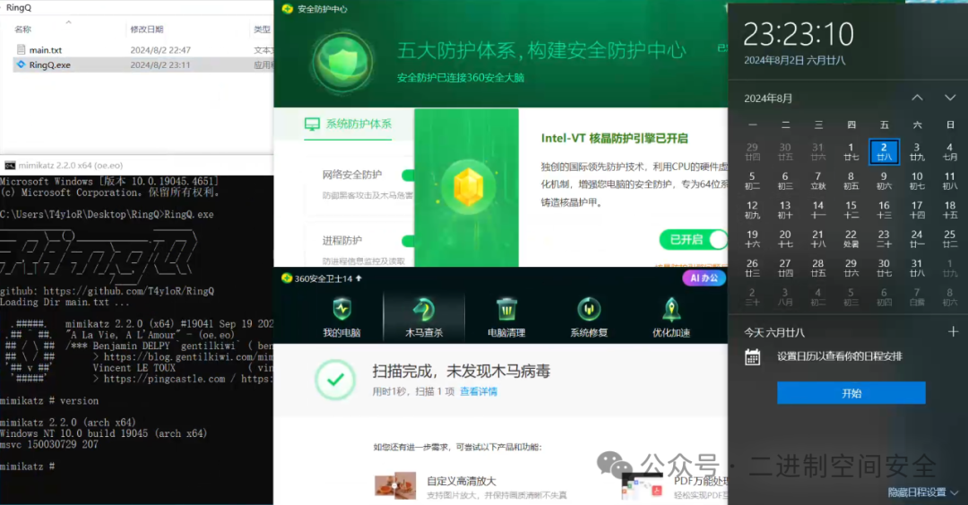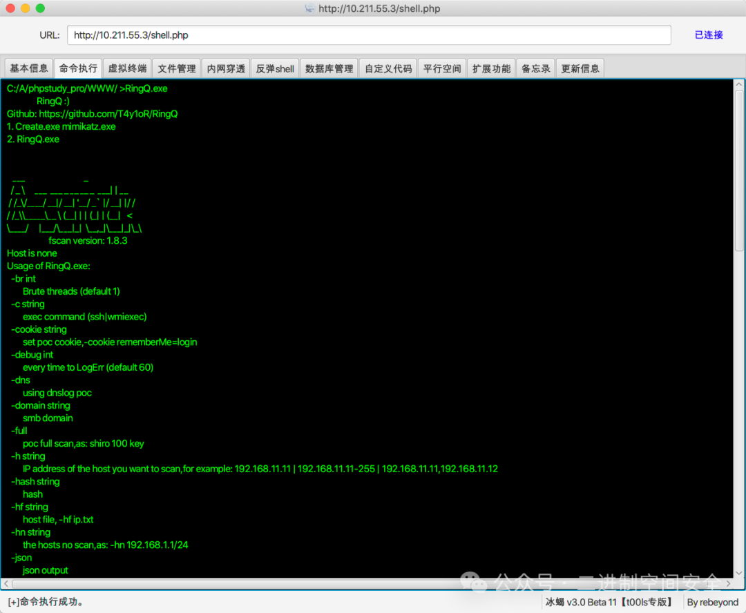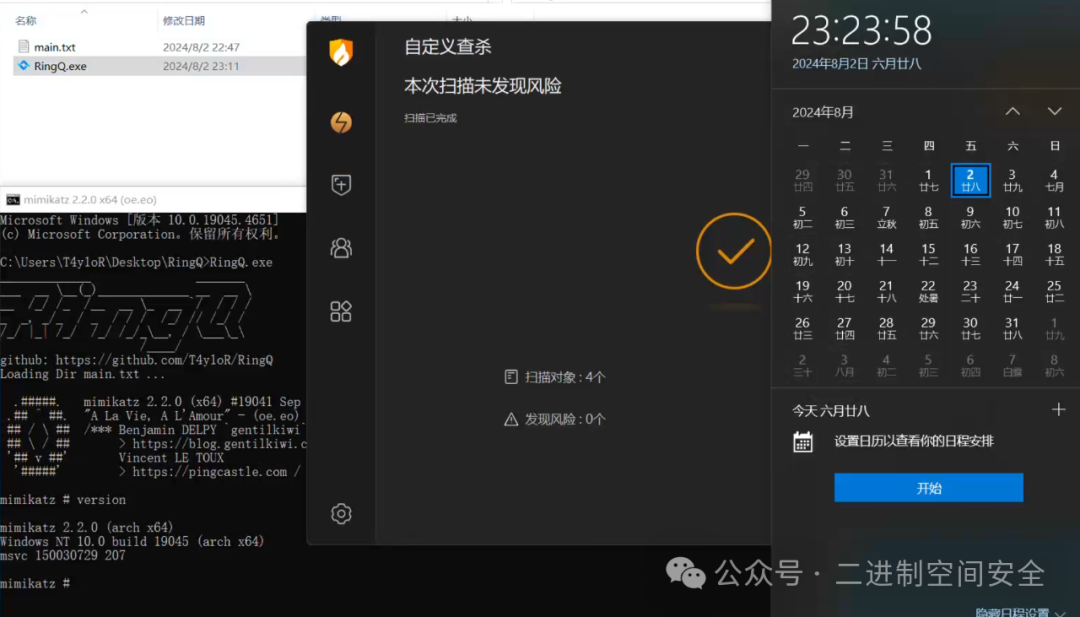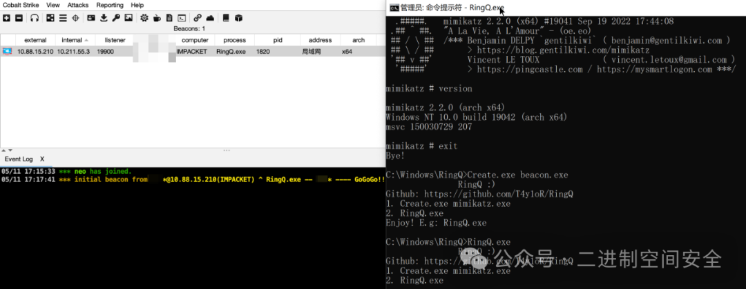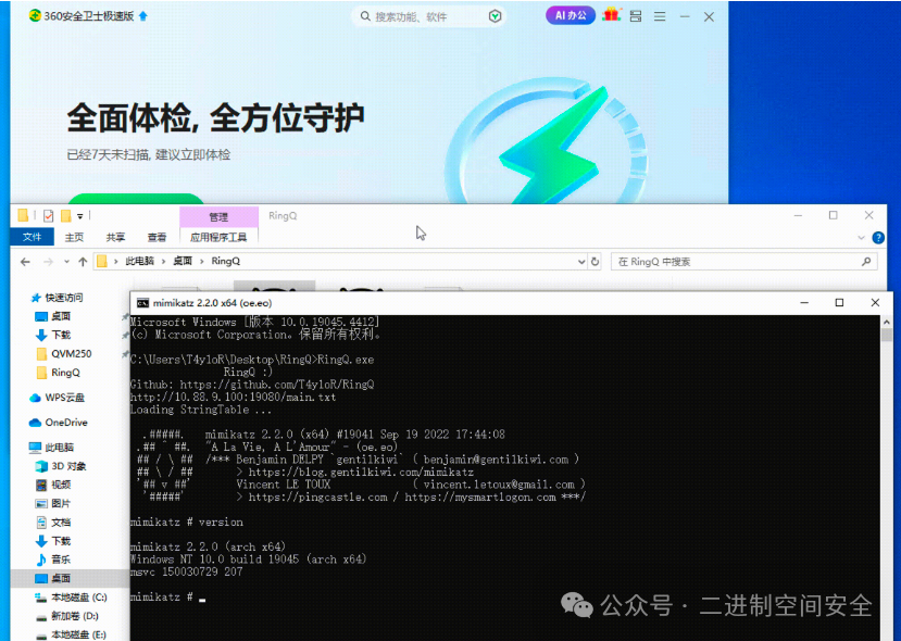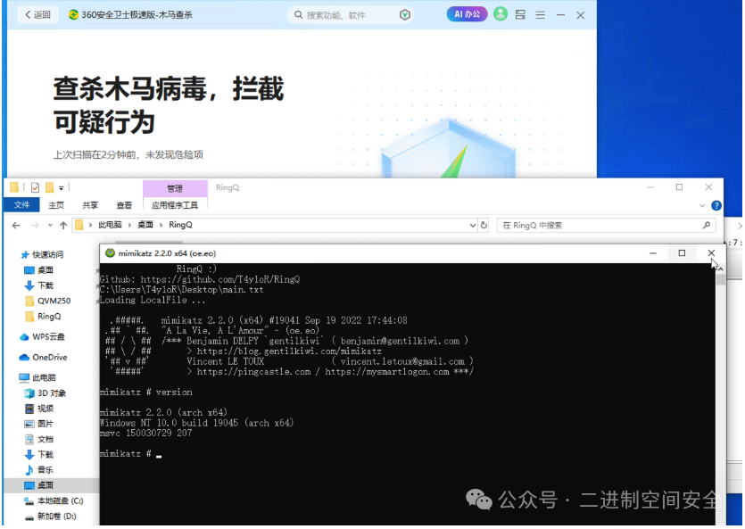 RingQ是一款后渗透免杀工具, 采用C++编写, 可实现对各类AV/EDR的快速免杀, 支持bypass AV/EDR、360、火绒、Windows Defender等主流防御产品。该免杀框架可通过简单修改源码、加载方式、加密混淆和执行逻辑等多维度来实现快速免杀, 并支持持续更新。