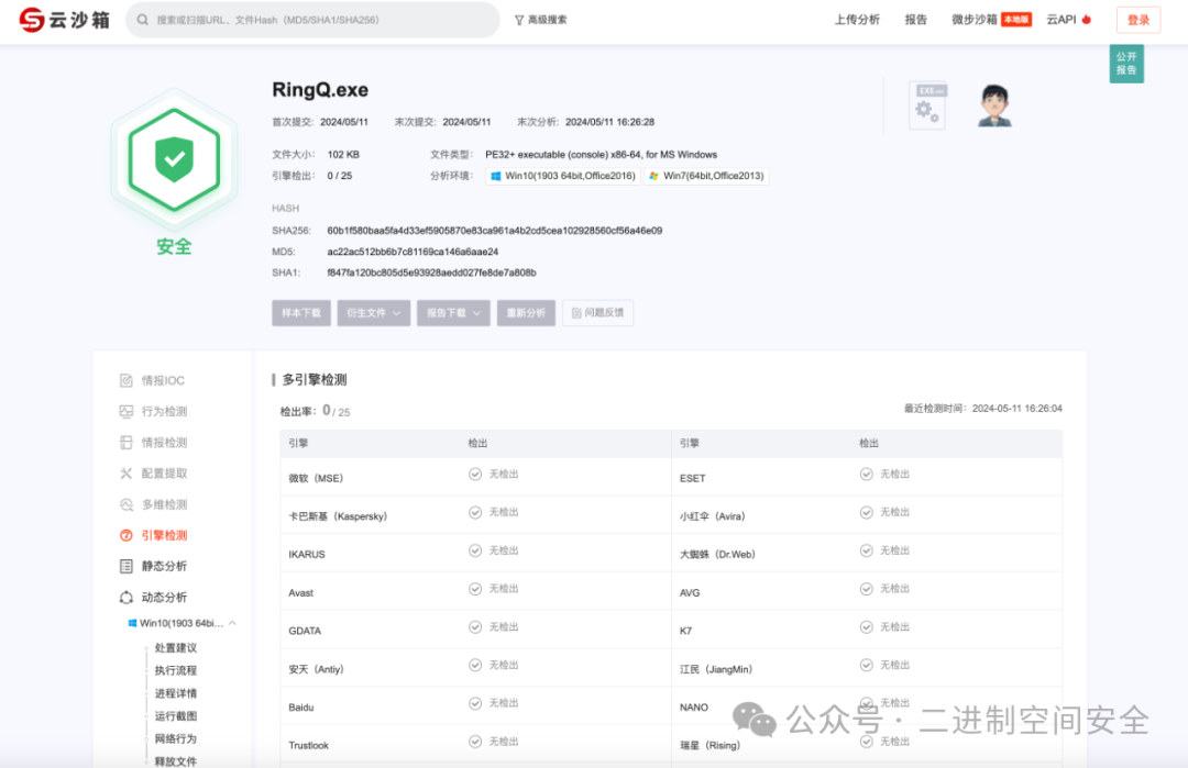因内置反沙箱, 执行后有些许延迟,需要耐心等待一会儿。