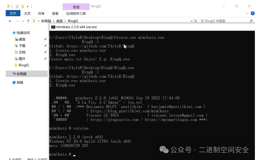 将main.txt和RingQ.exe上传到目标机器, 执行RingQ.exe