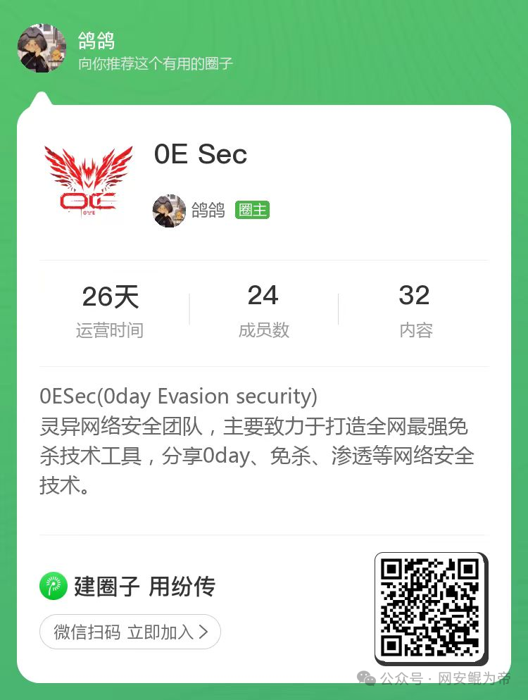 免杀及工具会持续跟进,欢迎大家进入圈子学习与交流,师傅们要进的抓紧哦!后续价格只增不减,错过机会难再遇哦!