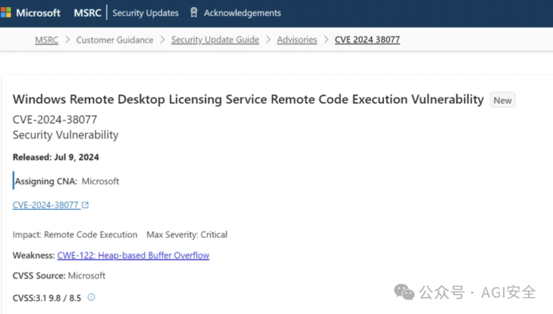该远程代码执行漏洞, CVSS评分高达9.8 ,可导致开启了远程桌面许可服务的Windwos服务器完全沦陷。 漏洞影响Windows Server 2000到Windows Server 2025所有版本,已存在近30年。 该漏洞可稳定利用、 可远控、可勒索、可蠕虫等,破坏力极大。