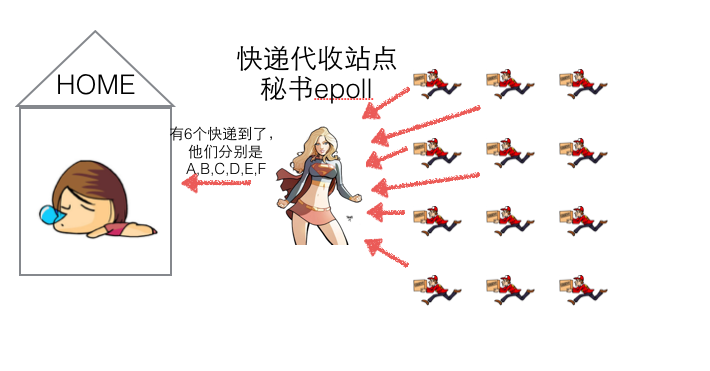 epoll的服务态度要比select好很多,在通知我们的时候,不仅告诉我们有几个快递到了,还分别告诉我们是谁谁谁。我们只需要按照epoll给的答复,来询问快递员取快递即可。