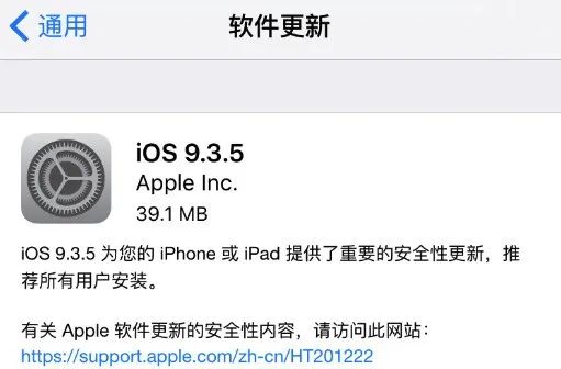 听闻曼哥被 0-day 漏洞攻击的事情后,苹果紧急调派人手修复漏洞,程序猿们键盘都快敲出火星了,终于完成修复,第一时间推送给所有用户,这才有了仅间隔两周就问世的“iOS 9.3.5”。