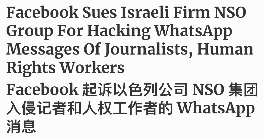 Facebook 表示,NSO 旗下的“飞马”软件,利用 WhatsApp 漏洞,侵入了 1400 名人权记者、律师的手机。