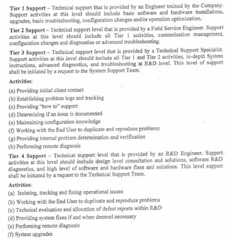 到了第 4 级,客户将享受由“研发工程师”提供的技术支持,包括“隔离、跟踪和修复操作问题”等。