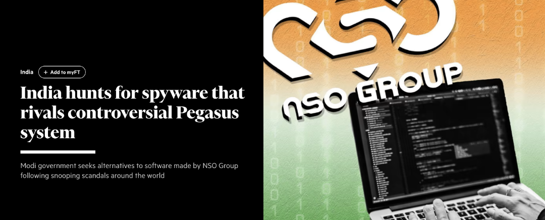 再比如印度,当舆论越来越大声地谴责 NSO 间谍软件时,印度也开始悄悄寻找替代品。
