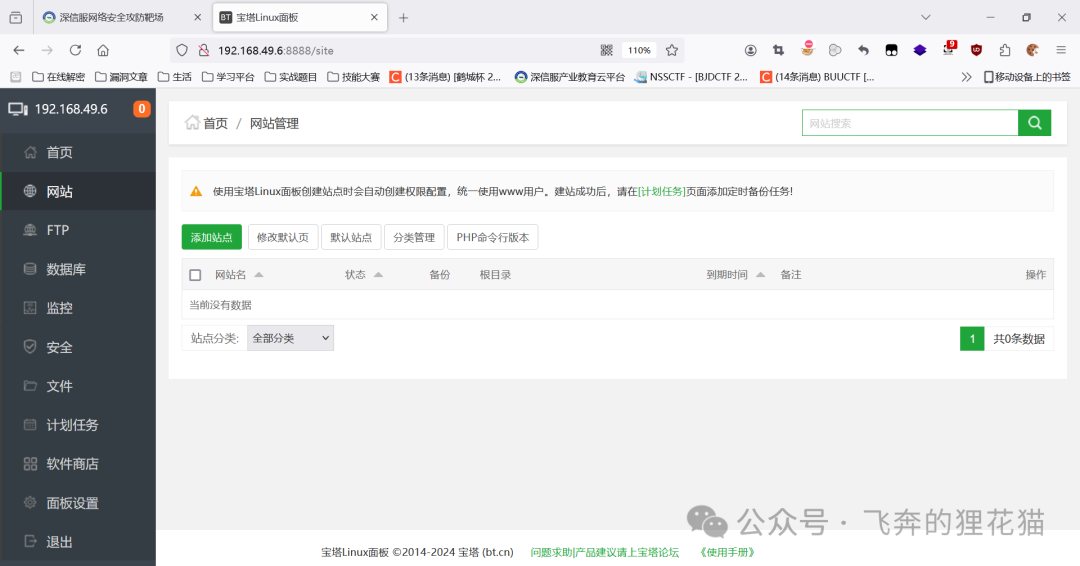 这里给大家提下我靶机A的大概设计思路:因为本人实在比较懒,不想去手搓装PHP+数据库+中间件服务。于是想到可以使用宝塔面板等进行部署。省时省力。但是面临了一个问题:使用过宝塔面板的朋友都知道,新版宝塔进入后需要登录宝塔账号密码才能继续使用,但是靶机又是不通网的。最后是通过安装一个老版本宝塔即可。关闭自动更新。然后有了宝塔面板,其他的可以说就是傻瓜式部署了。