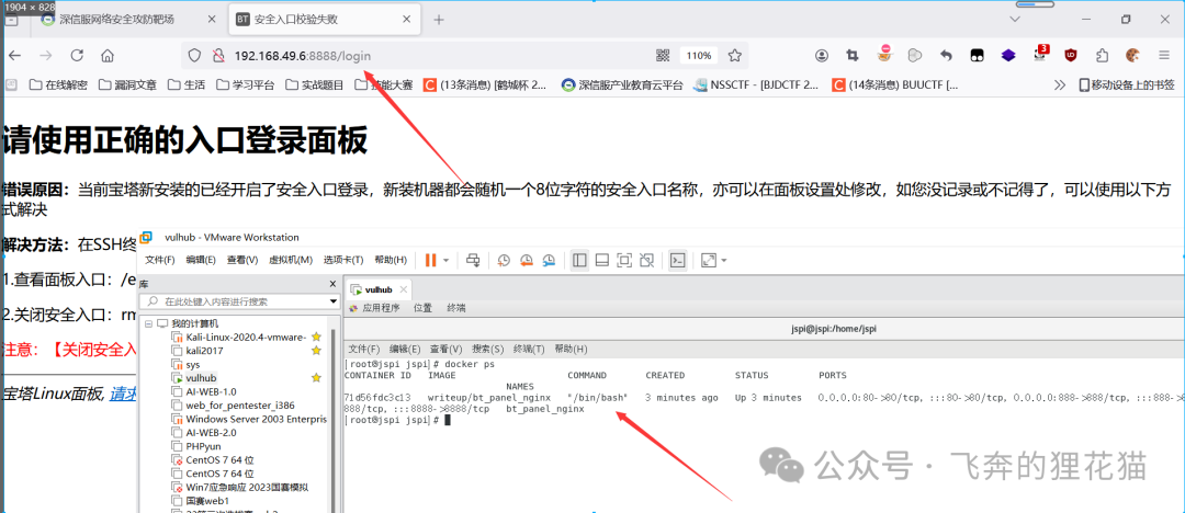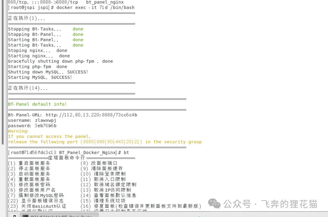 1docker run -itd -p 80:80 -p 888:888 -p 8888:8888 --restart=always --name bt_panel_nginx writeup/bt_panel_nginx /bin/bash