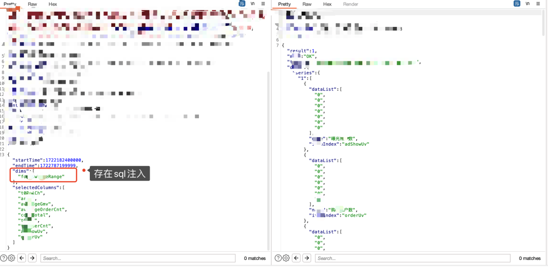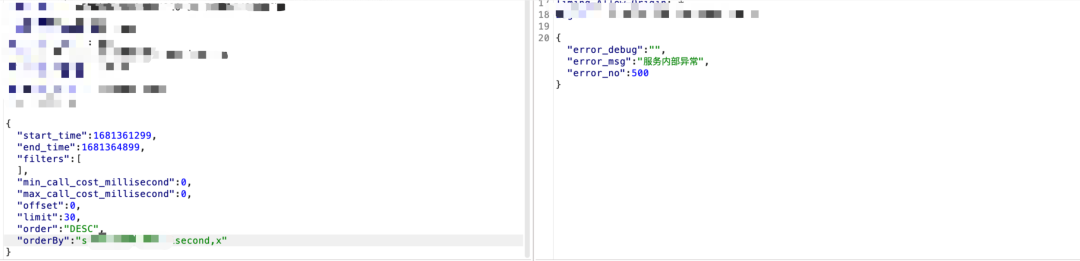 1当"orderby":”1”返回true,"orderby":”x”或"orderby":”0”返回false时,大概率存在注入,orderby后面直接跟sql语句即可注出数据。