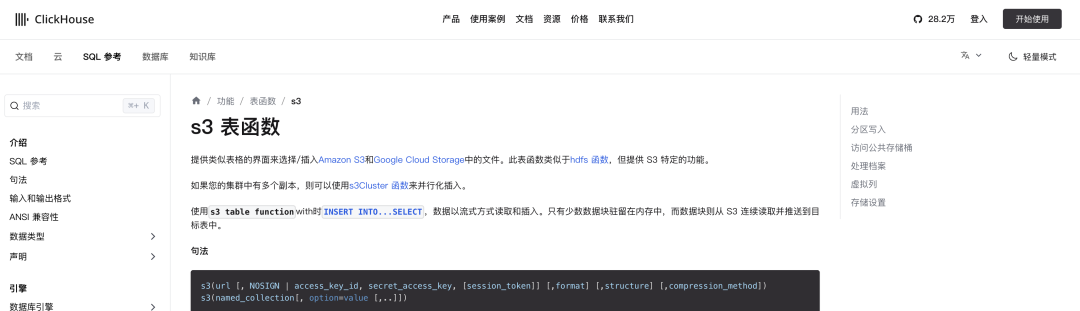 2)由S3函数引起的SSRF漏洞:https://clickhouse.com/docs/en/sql-reference/table-functions/s3
