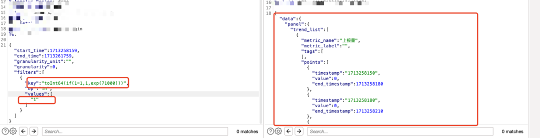 Clickhouse有个特性,toInt64(if(1=1,1,exp(71000)))时为true,toInt64(if(1=2,1,exp(71000)))时为false,因此我们可以用toInt64(if(1=1,1,exp(71000)))去进行快速的sql注入证明: