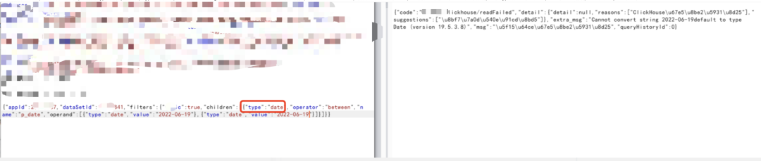 此处会有个小细节,一般筛选的时候,会有个type或者op的字段,type表示类型,对应有int、string等(有些可能用数字1、2、3这种代替),对于一些注入的判断,需要去对类型进行fuzz,如果默认数据包对应的类型不报错,可能type换成其他类型时,也可能会报错,从而进行sql注入利用。