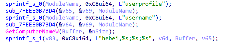 与“伪猎者”组织使用相同的特殊方式来拼接受害者信息,都为“Hebei,用户名;计算机名;profile路径”的方式。