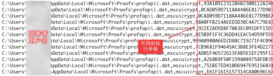 经过我们对多个不同数据的对比发现,不同受害人执行的命令也不同。因此可以推测出,该数据是攻击者针对每个受害人定制化生成的,可能与攻击所达到的不同阶段有关。