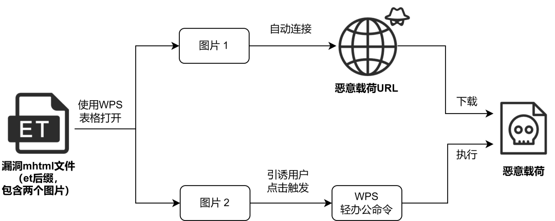 攻击样本的后缀名为et,虽然后缀为et,但实际内容为mhtml格式。攻击者在表格中插入两个图片,并通过这两个图片来触发漏洞。