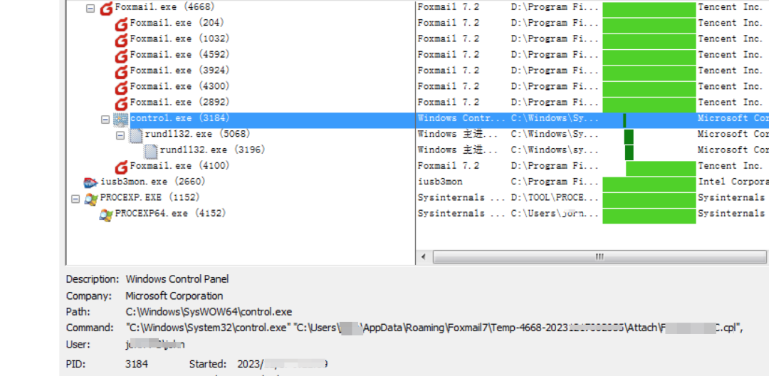 攻击者构造了两个恶意附件,Foxmail在邮件解析时,由于验证缺失会导致恶意代码被执行,从而执行邮件附带的两个恶意附件。