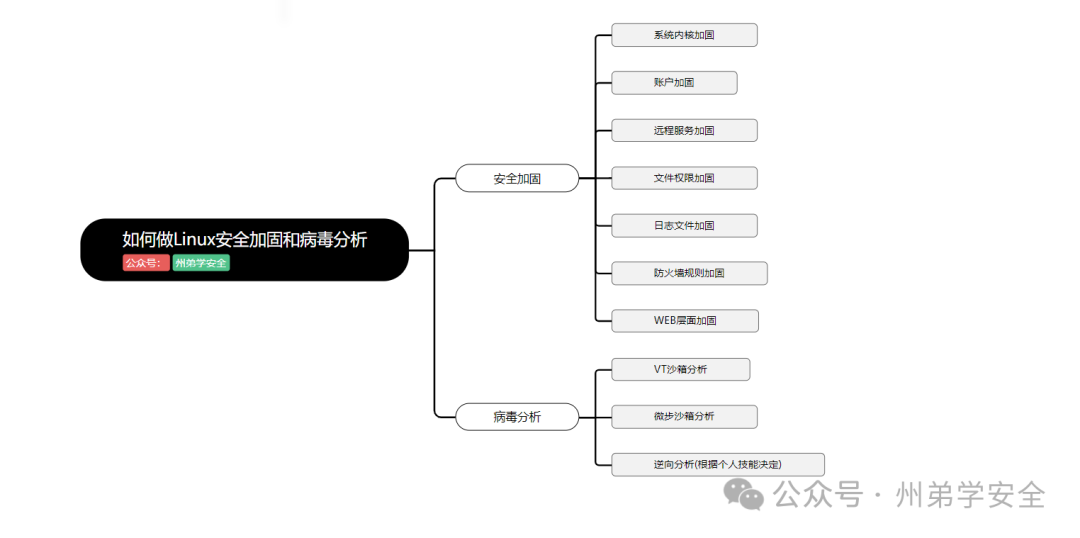 Linux安全加固如果接触内核等知识,就复杂太多了,如果去网上搜索,其实大部分按照等保来做的,大体就是从内核加固、账户加固、远程服务加固、文件权限加固、日志文件加固、防火墙规则加固、WEB层面加固,参考之前总结的等保文章