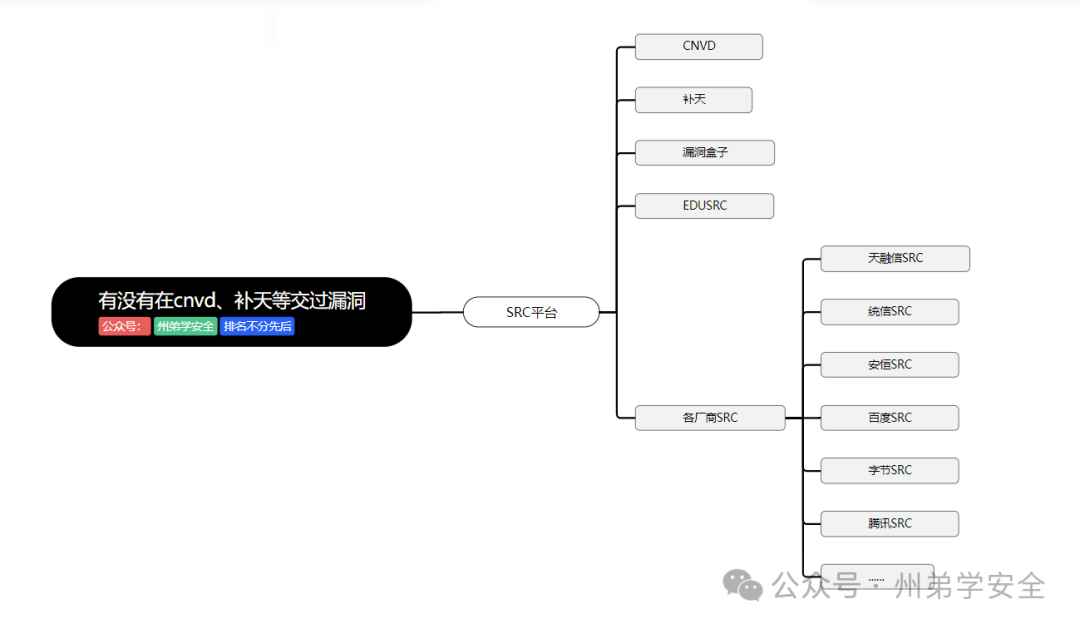对于挖过SRC和实战过信息搜集的师傅肯定并不陌生,肯定还是以前期信息搜集为主,以公司名,下属单位,特征名进行搜集,APP以应用商店,七麦数据等进行搜集,如果直接给资产了更好说,这里先挂一张之前的思维导图,仅供参考