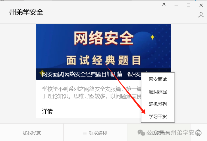 相关的板块链接可以在关注本公众号(州弟学安全)->主页右下角->历史合集->网安面试查看(也可订阅此板块)注意后续更新