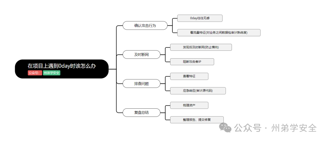 0day如果在本人未知、不是本人审计出来发现的情况下,第一个就是看互联网发布的一些信息,参考 怎么复现出最新的漏洞 问题,其次要有辨别是否为0day的能力,在一个就是互联网没有发布相关信息,你保护的资产被攻击了,这个时候就需要处置了