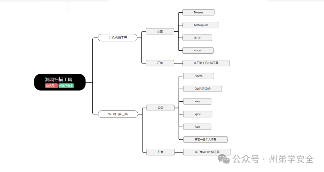 我们将漏洞扫描工具常分为主机扫描和WEB扫描工具,这次我们以思维导图呈现