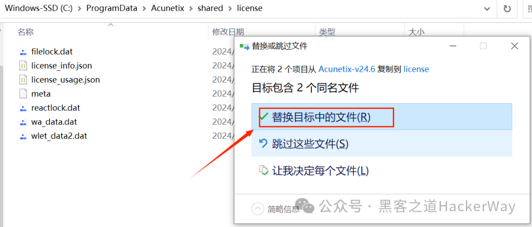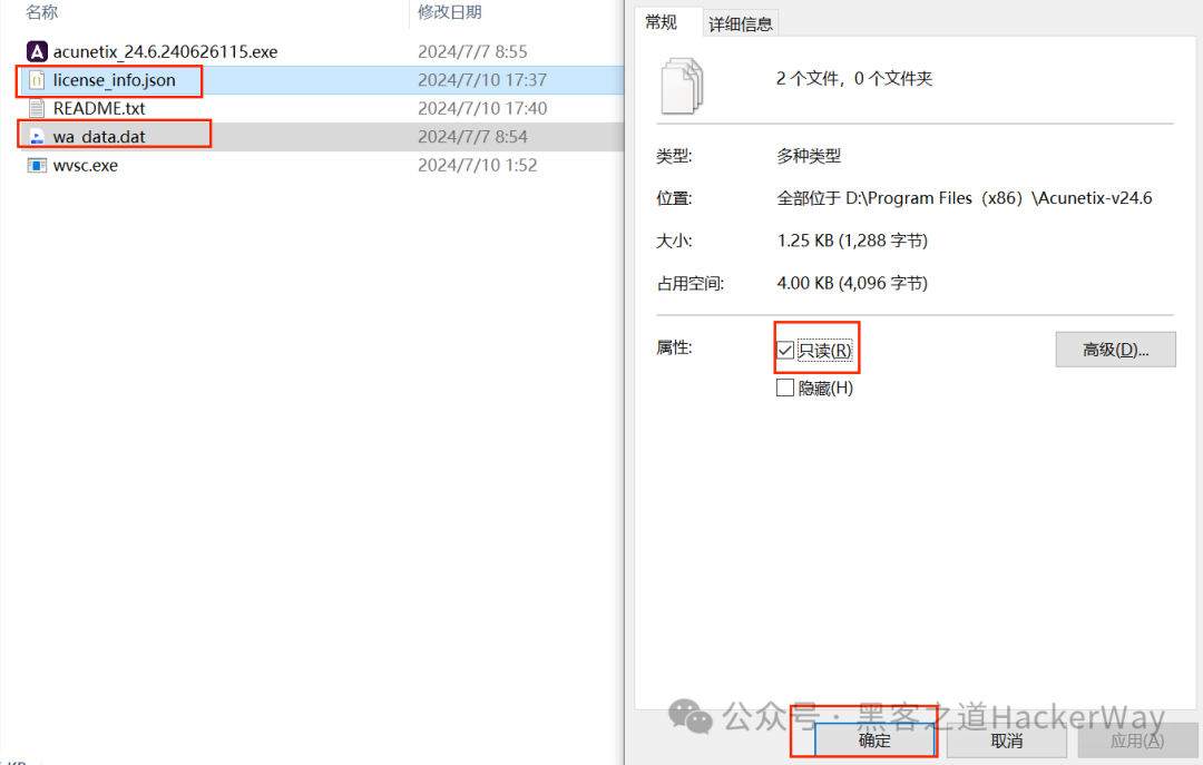 8、将解压目录下的“license_info.json”和“wa_data.dat”移动到“C:\ProgramData\Acunetix\shared\license”中,然后选中两者,右键设置为可读