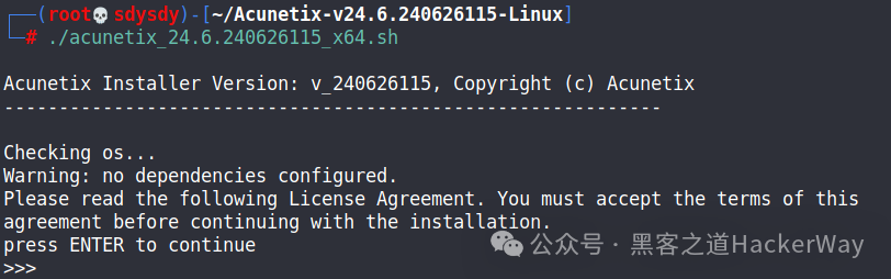 1─(root㉿sdysdy)-[~/桌面/Acunetix-v24.4.240626115-Linux] 2└─# ./acunetix_24.4.240626115_x64.sh
