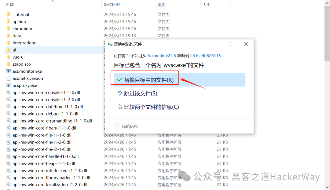 7、将解压目录下的“wvsc.exe”替换到你实际安装选择的目录“\Acunetix\24.6.240626115”下