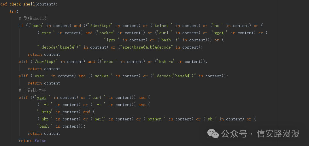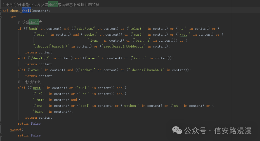 读取文件内容然后去分析,下面是检测反弹shell的,