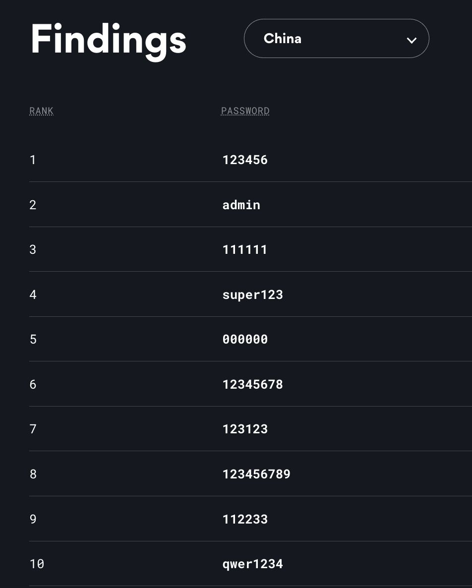 密码管理器 NordPass 发布了一份年最常用密码列表
