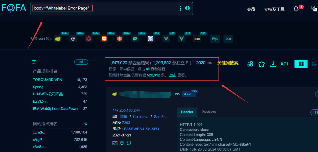 对于这样的大批量的测试的话,可以使用FOFA检索语句,就对上面的一个关键字进行检索