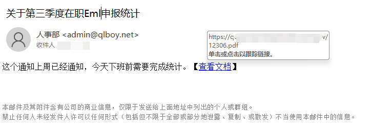 攻击者除了使用律师函为主题的钓鱼邮件,还对金融行业使用以员工私生活信息为主题的钓鱼邮件: