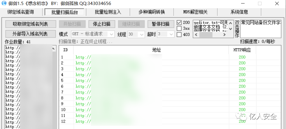 导出同cms站点列表,扫描旁站备份文件