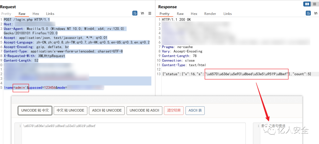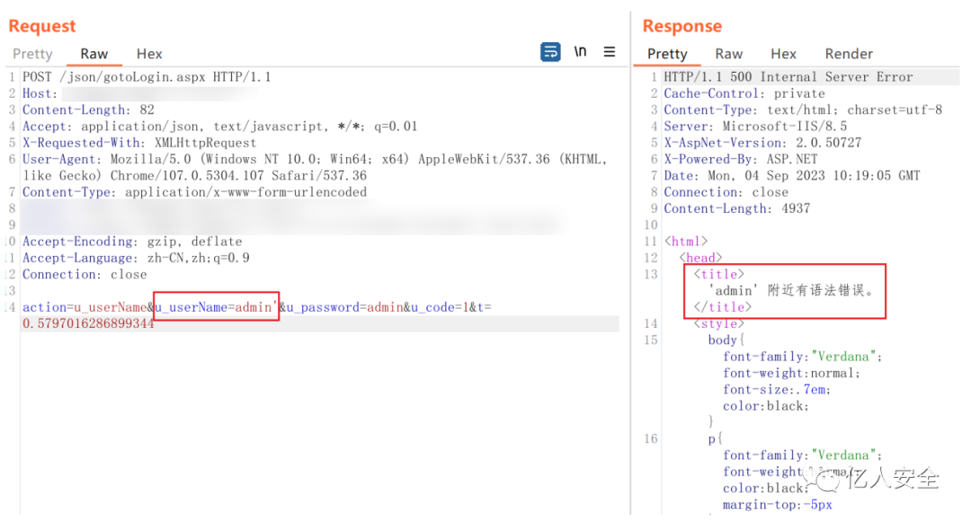除了被动扫描以外,我们还可以通过手动添加单引号、双引号去查看返回包,若存在类似报错则可能存在sql注入