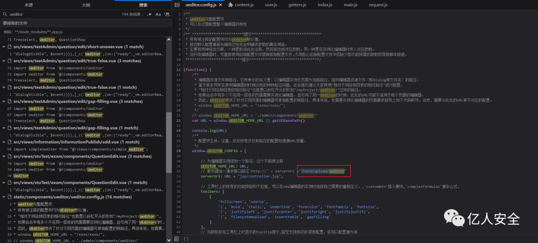或者全局进行检索 ueditor,发现ueditor路径