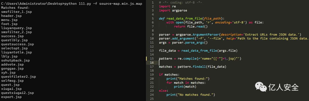 使用脚本提取路径,提取后的结果可作为字典放到burp进行fuzz