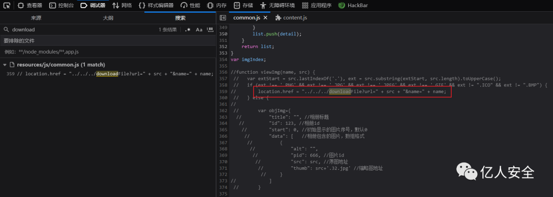 像这里我们通过检索 download ,发现一个被注释的下载接口,拼接路径尝试进行任意文件读取