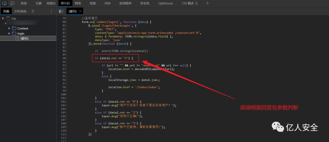 前端判断登录逻辑根据返回包的ret值决定,当返回值为1则成功登录